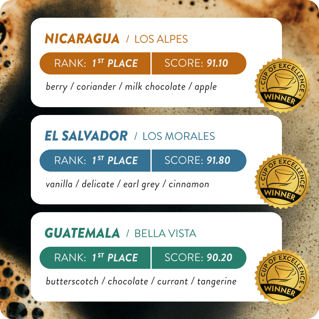 Angelino's Coffee won 16 top Cup of Excellence coffees. Collect them all!