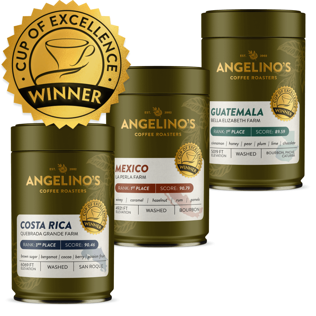 Angelino's Coffee won 16 top Cup of Excellence coffees. Collect them all!
