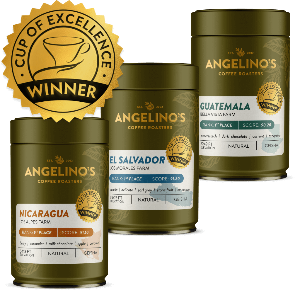 Angelino's Coffee won 16 top Cup of Excellence coffees. Collect them all!