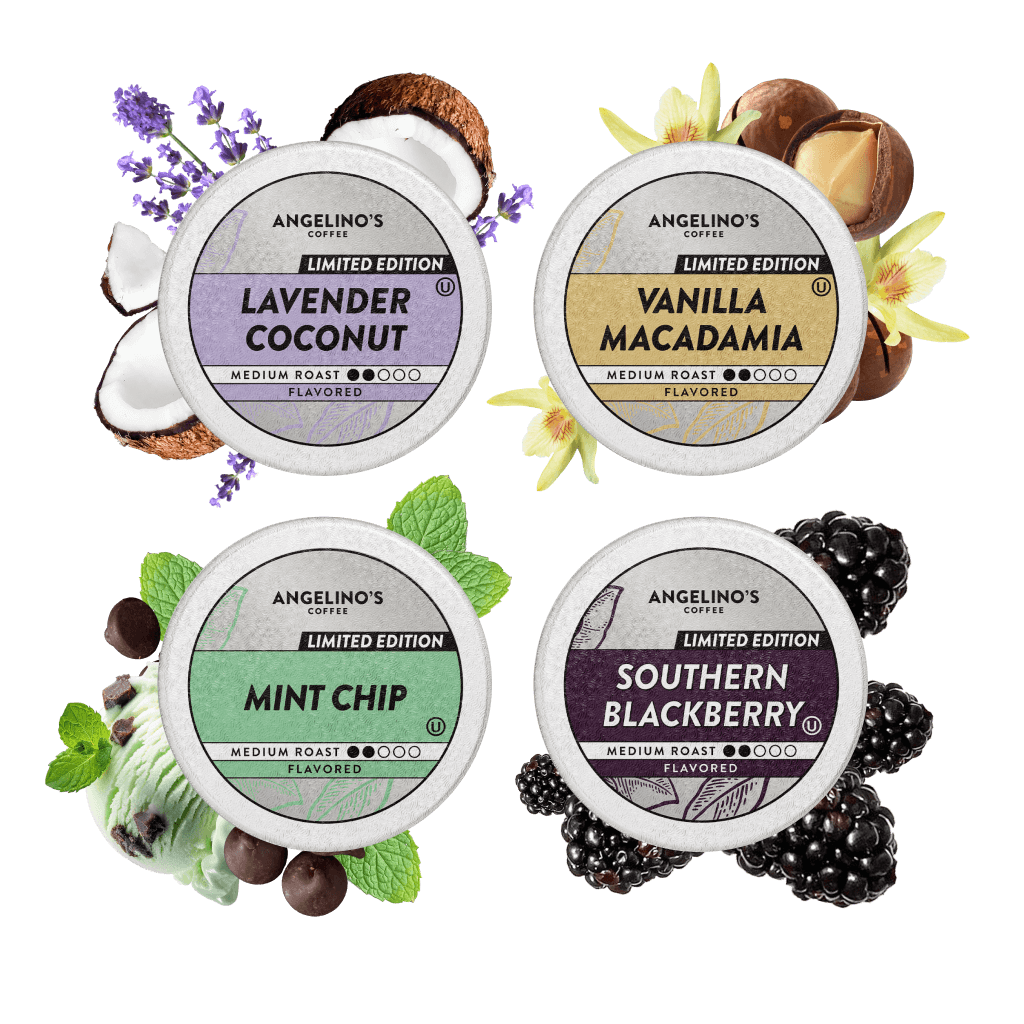 Our Seasonal Flavor Variety Pack has the perfect combination of all your coffee favorites: Tropical and buttery Lavender Coconut, smooth and nutty Vanilla Macadamia, refreshingly fruity Southern Blackberry, and nostalgic ice cream-inspired Mint Chip. Includes 6 of each. This item won't last long so grab one while it lasts!